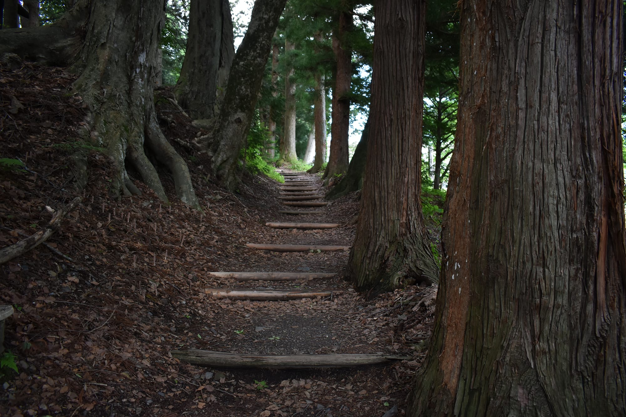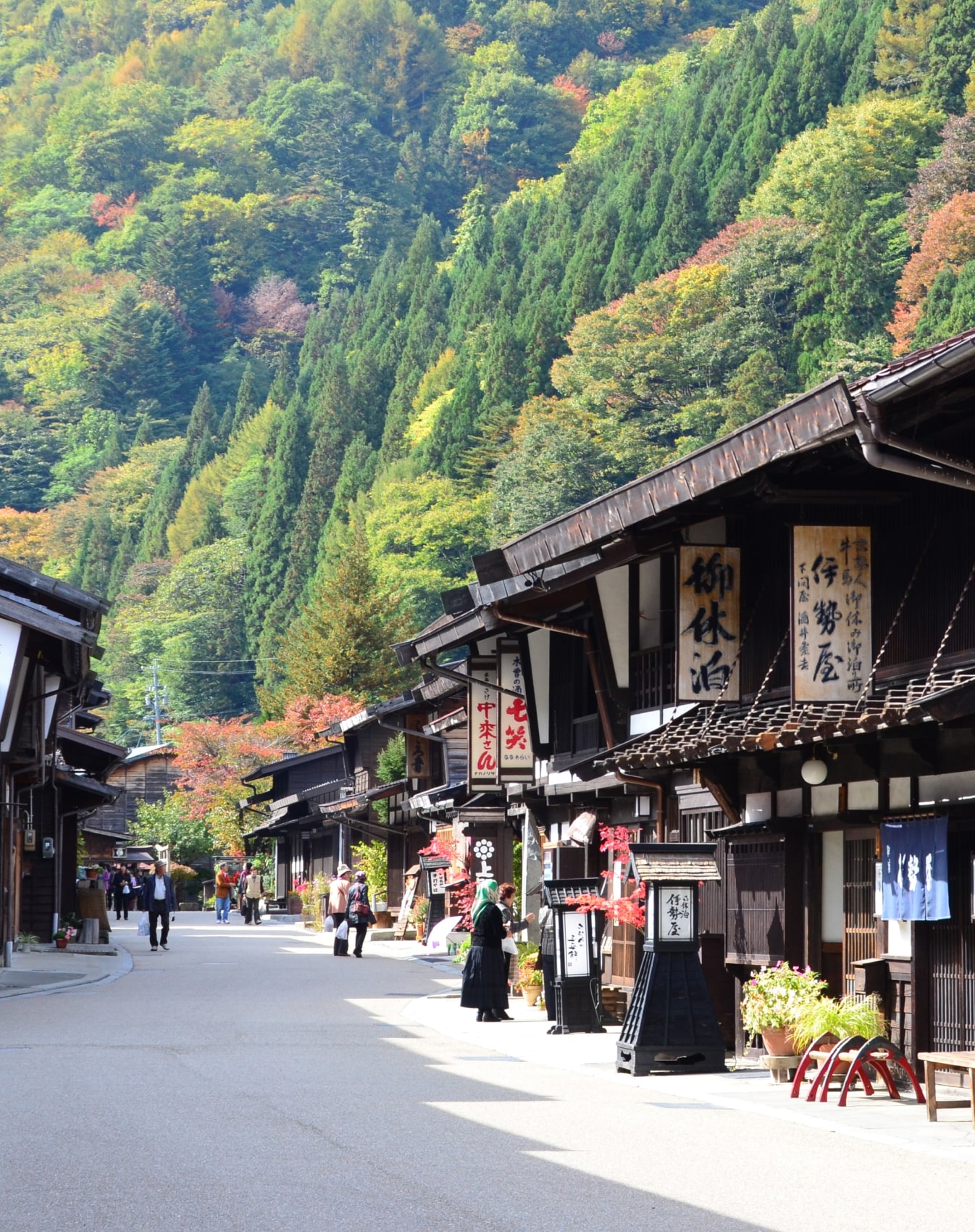 A secluded segment, where forested ridges and the enduring craft traditions of Kiso come into view. Narai-juku awaits at the end—a long, narrow town built for those who traveled far.
